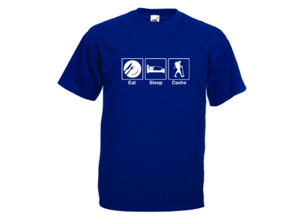 T-Shirt from Fruit of the Loom in six different colours with the classic print Eat Sleep Cache. Is there anything else?
